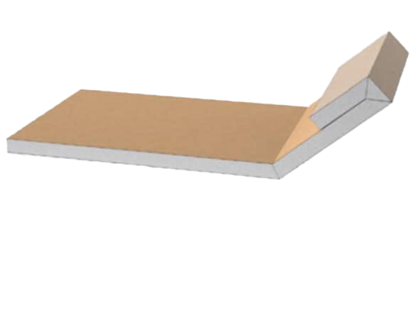 Parte sagomata angolata con 1 fresatura a V 45°, dalla parte posteriore e 2 fresature a V di 90°