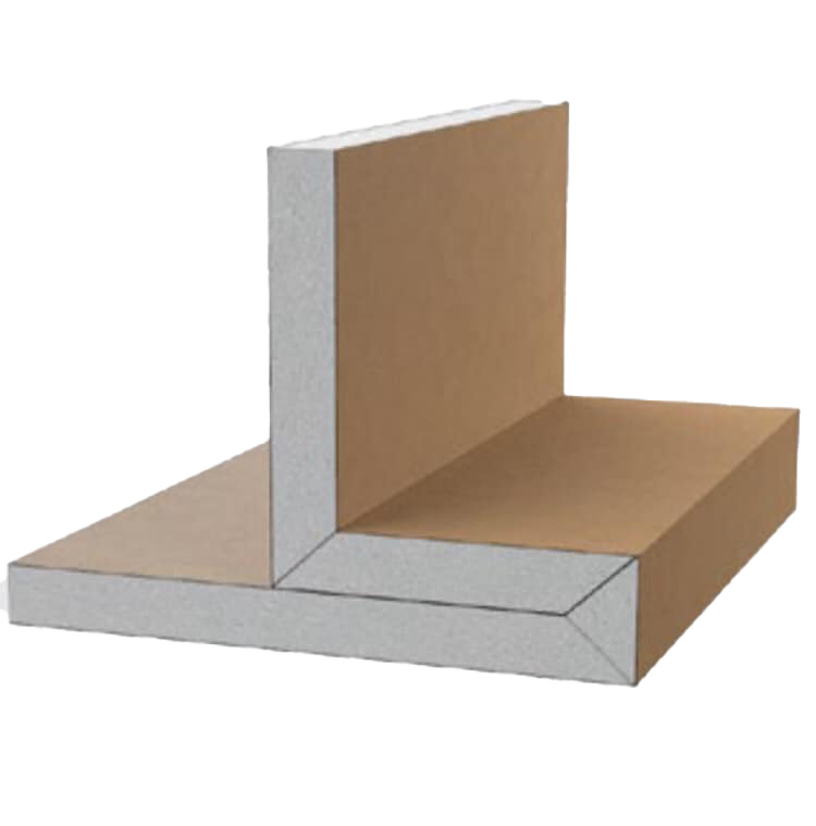 Parte sagomata angolata con 3 fresature a V di 90°, 2x dall’alto / 1x dal basso, dal retro.